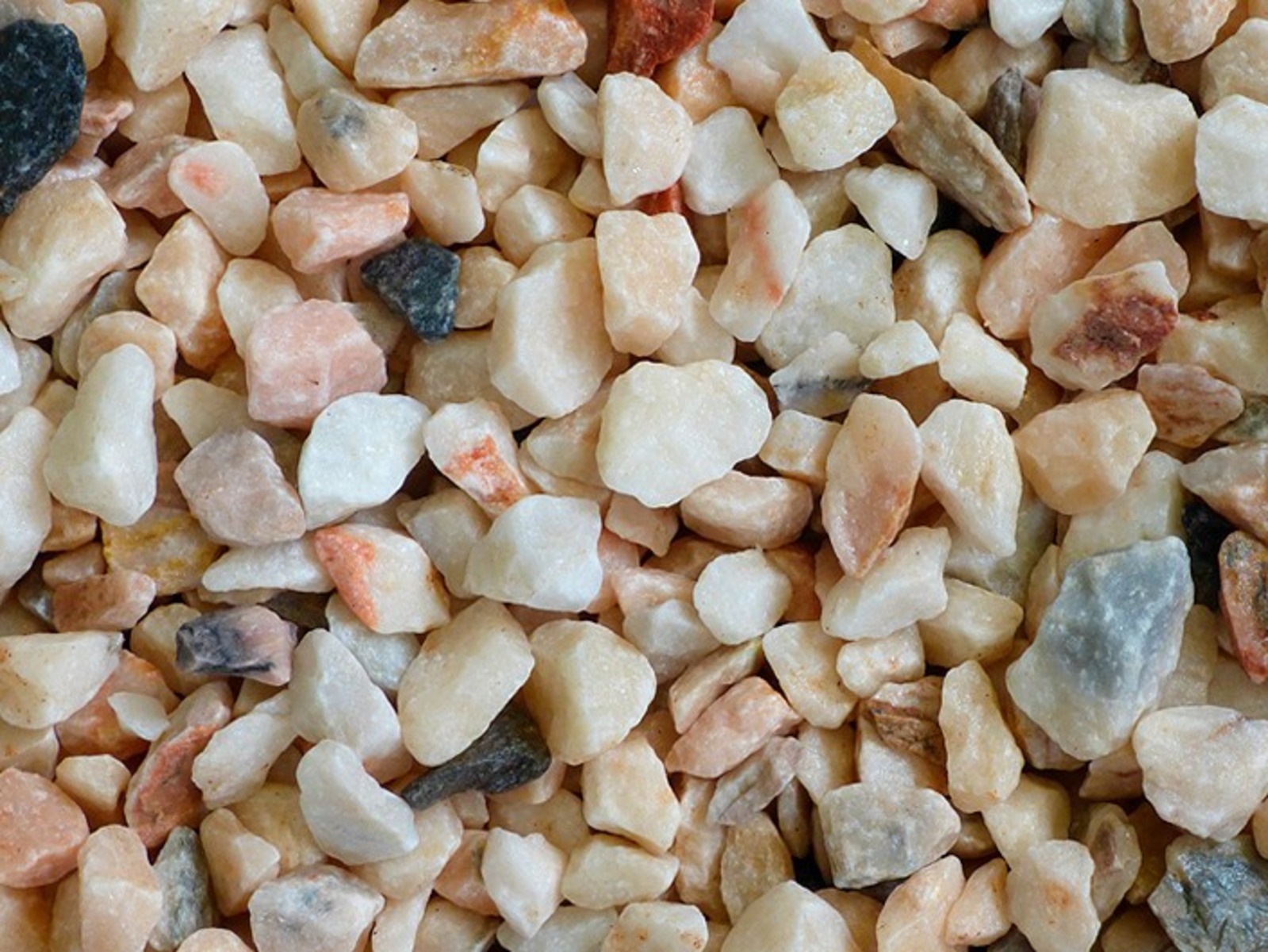 This angular marble gravel features a harmonious blend of pink, grey, white, and peach hues, delivering a visually appealing and vibrant finish. Its striking colour palette is designed to enhance landscaping projects with a bright, contemporary aesthetic